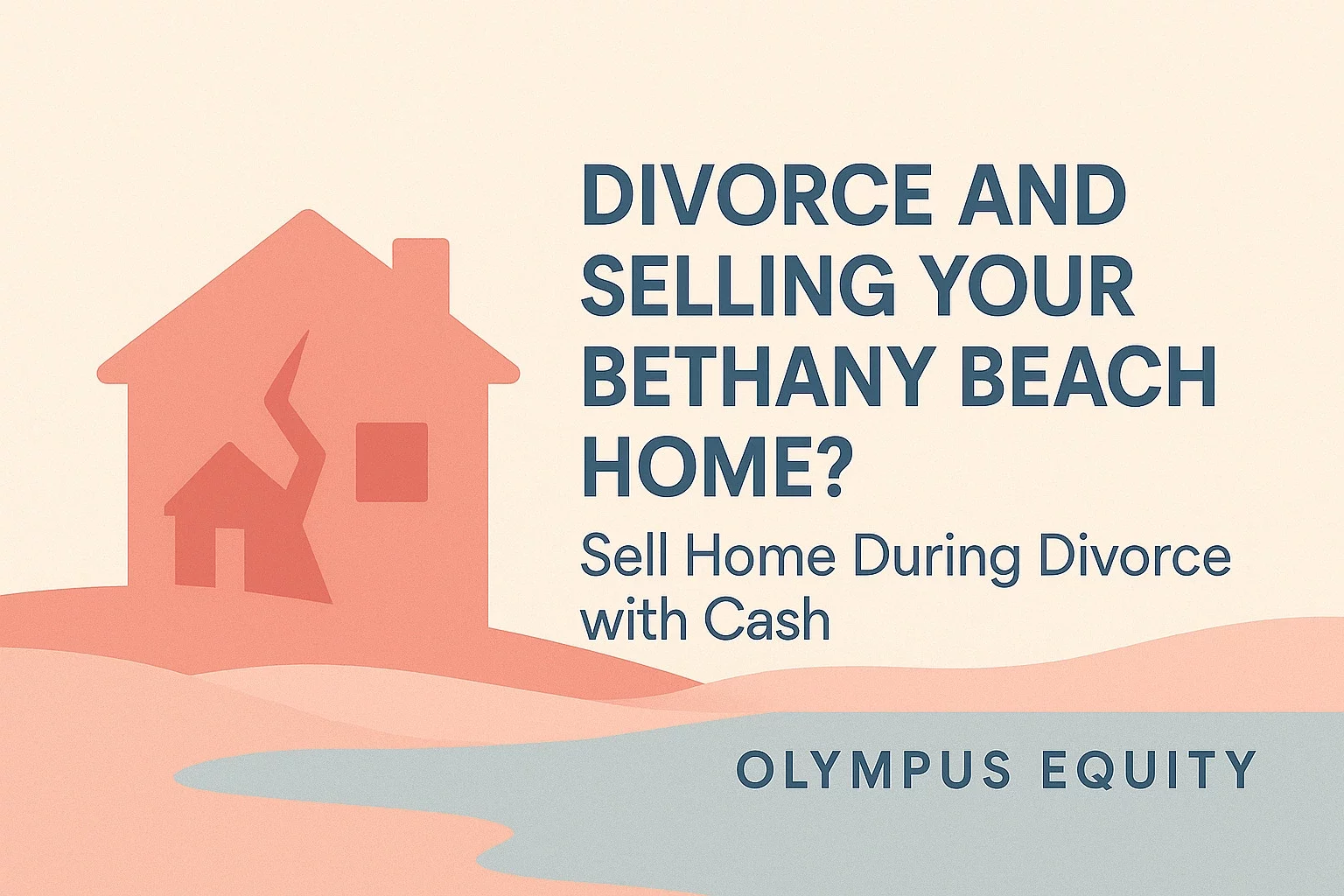 Navigating a divorce in Bethany Beach, Delaware, is emotionally and financially draining, especially when selling a shared home. For homeowners aiming to sell home during divorce, Olympus Equity offers a fast, cash sale solution, buying as-is and closing in 7-14 days with no fees or legal delays. Bethany Beach’s coastal market, part of Sussex County’s vibrant real estate scene, faces challenges like legal complexities in splitting assets and buyer hesitancy, with traditional sales taking 60-90 days, per the Delaware Association of Realtors, due to 7% mortgage rates in 2025 (per Freddie Mac). This guide explores how to sell home during divorce in Bethany Beach’s 2025 market, highlights cash sale benefits, includes a Maryland section for regional appeal, a divorce sale checklist, and FAQs on co-ownership to streamline your sell home fast during divorce in Bethany Beach.